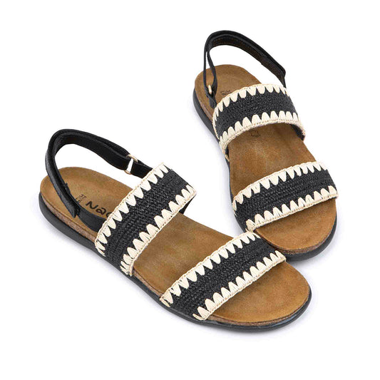 Kayla Jet Black Leather/Raffia (7806-NMO)