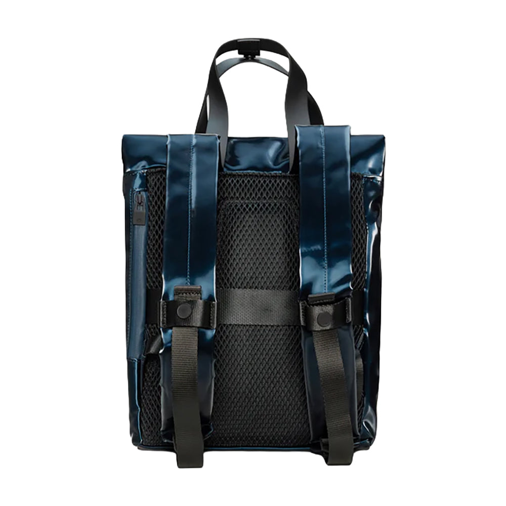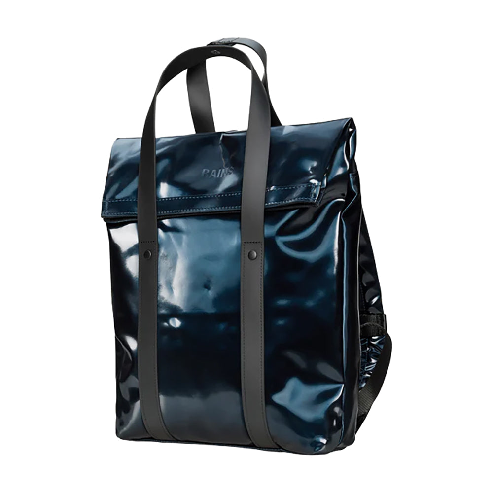 Sleek convertible tote-backpack with a modern, structured silhouette. Crafted from Rains’ signature waterproof material with smooth straps and a glossy finish. Lightweight, versatile design with dual carry options and a roomy interior for everyday organization.