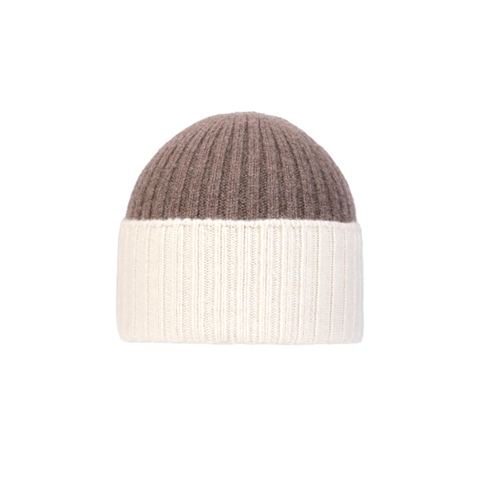 Soft rib-knit beanie in a clean, two-tone design for a refined winter look. Made from a luxurious wool-cashmere blend that offers lightweight warmth and exceptional comfort. The fold-over cuff adds extra coziness and a polished finish for everyday cold-weather wear.