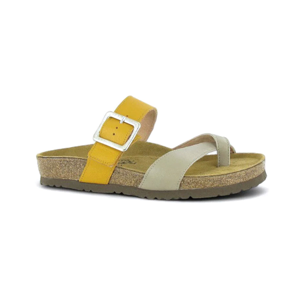 The Fresno Sandal (8250) by Naot is a trendy take on the classic toe wrap sandal with contrast leathers and the metallic buckle hardware. The suede wrapped cork footbed molds to your foot with wear, providing you with comfort and support for years to come. This casual leather sandal is perfect for travel and vacation, from long walks on the beach to touring museums. Pair the Fresno Sandal with athletic wear for a comfortable walk and switch to jeans for a fun casual look.
