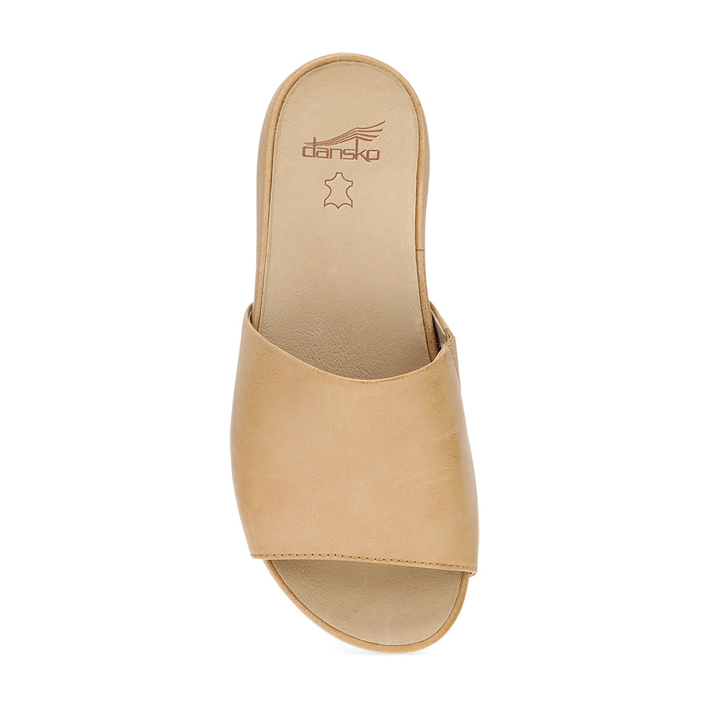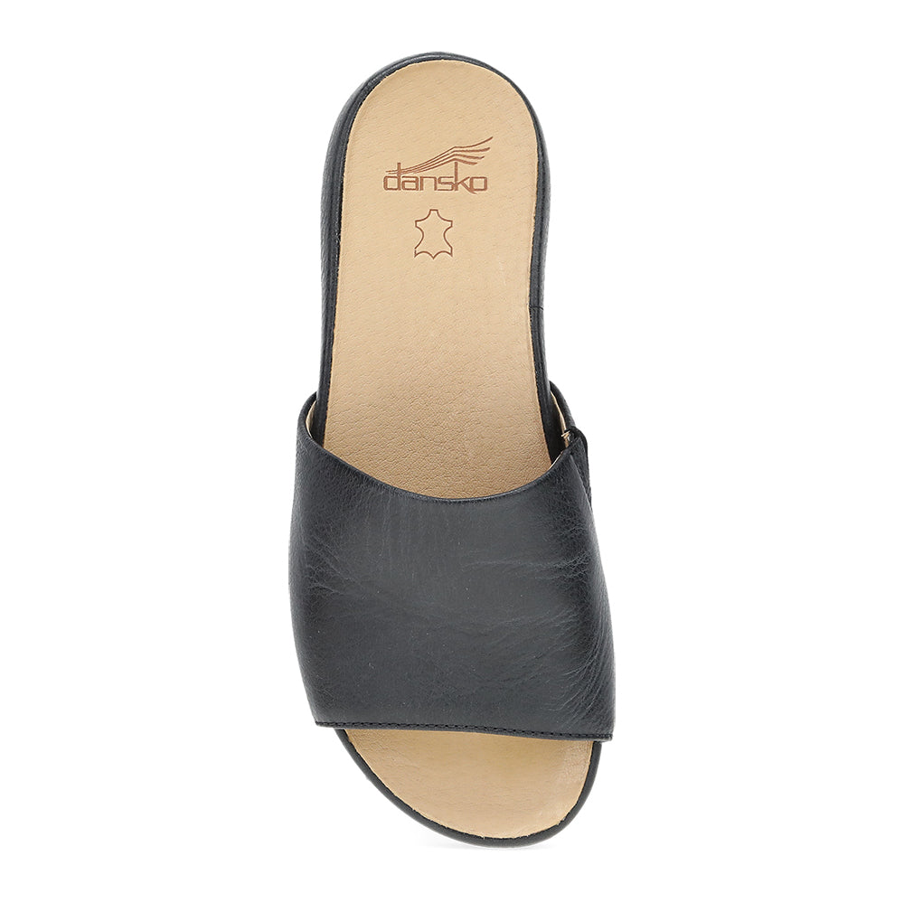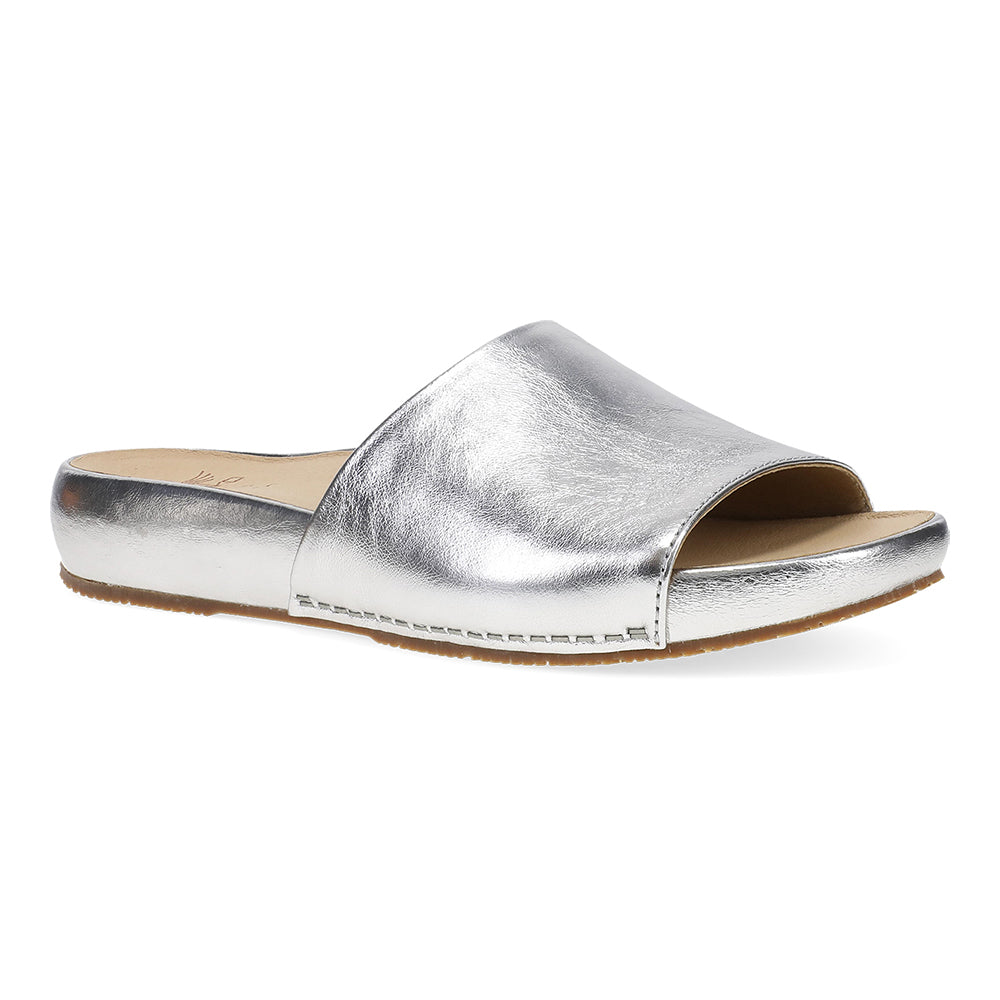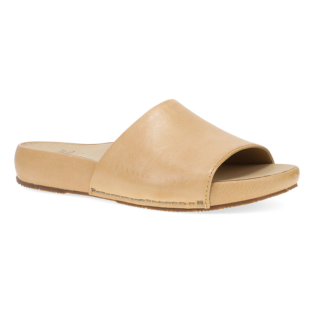 Sleek slide sandal with a clean, open-toe silhouette and wide leather strap. Soft leather upper and cushioned footbed offer comfortable, easy wear. Lightweight sole provides everyday support for casual, warm-weather use.