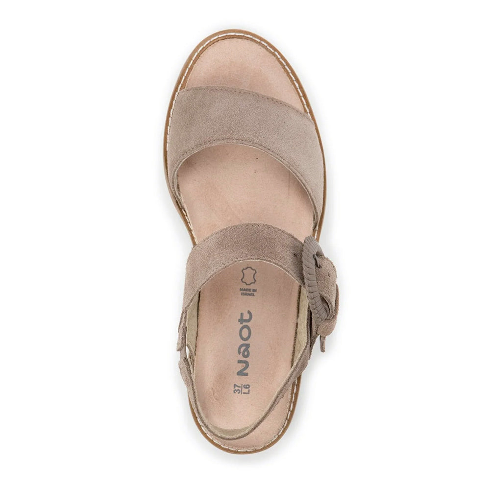 Turn heads this spring in the Crepe platform sandal (124100) by Naot! Featuring their signature anatomic cork and latex footbed wrapped in luxurious suede, this shoe molds to the shape of your foot and gets more and more comfortable with each wear. Pair with your favorite long jean skirt and cropped halter top for a chic, effortless look.